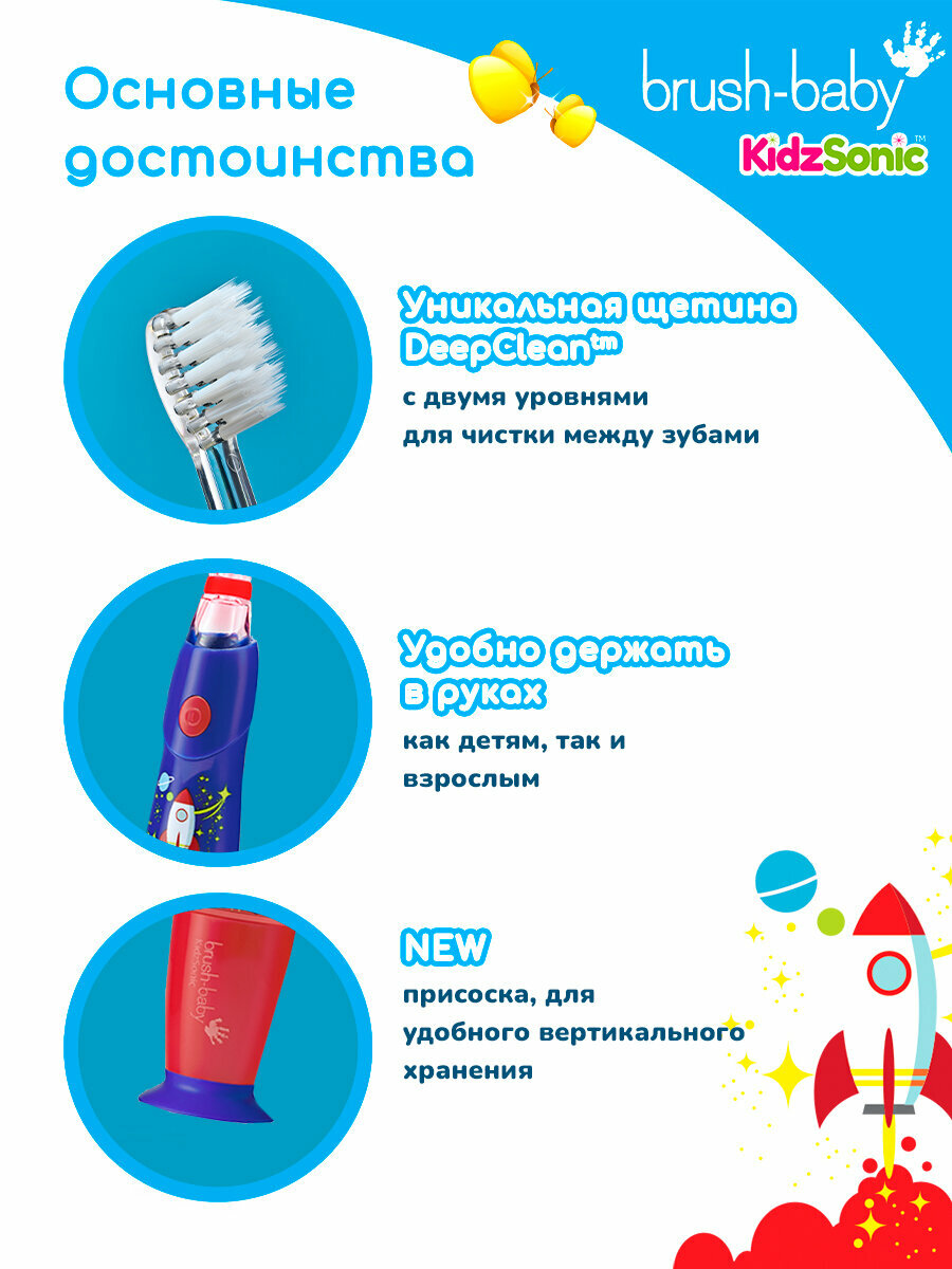 Электрическая зубная щетка Brush-Baby KidzSonic (с 3 лет), ракета