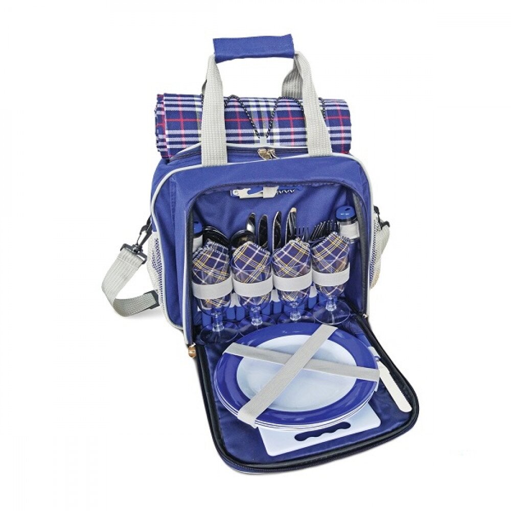 Лучшие цены. Набор для пикника Green glade 3141 выполнен в форме сумки-рюкзака. Его удобно брать в путешествие, поход или на дачу. Комплект рассчитан на 4 человека, состоит из тарелок для гарнира и нарезок, бокалов, вилок, столовых приборов, деревянной разделочной доски и штопора. Данный набор поможет по-домашнему организовать отдых на природе. В изотермической сумке есть отделение под хранение овощей, фруктов, напитков и пр. Одеяло из набора для пикника имеет специальное покрытие, которое не пропускает влагу. Магазины в вашем городе.