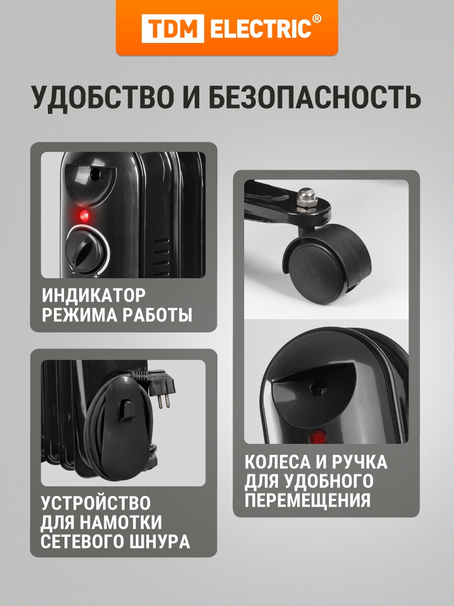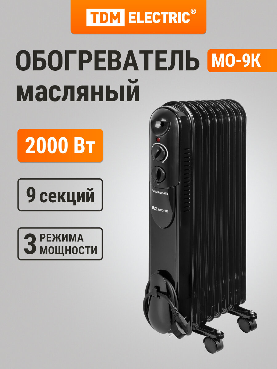 Радиатор масляный Tdm Electric МО-9К, 9 секций, 2000 Вт, черный