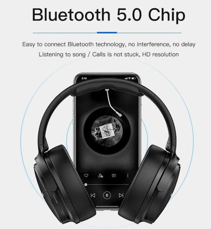 Беспроводные накладные наушники AWEI A780BL, Bluetooth 5.0, TF card, складные, Черный