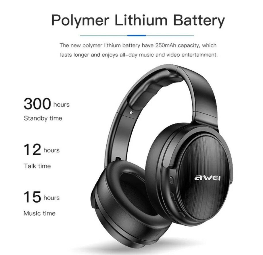 Наушники беспроводные полноразмерные Stereo Awei A780BL складные (черный)