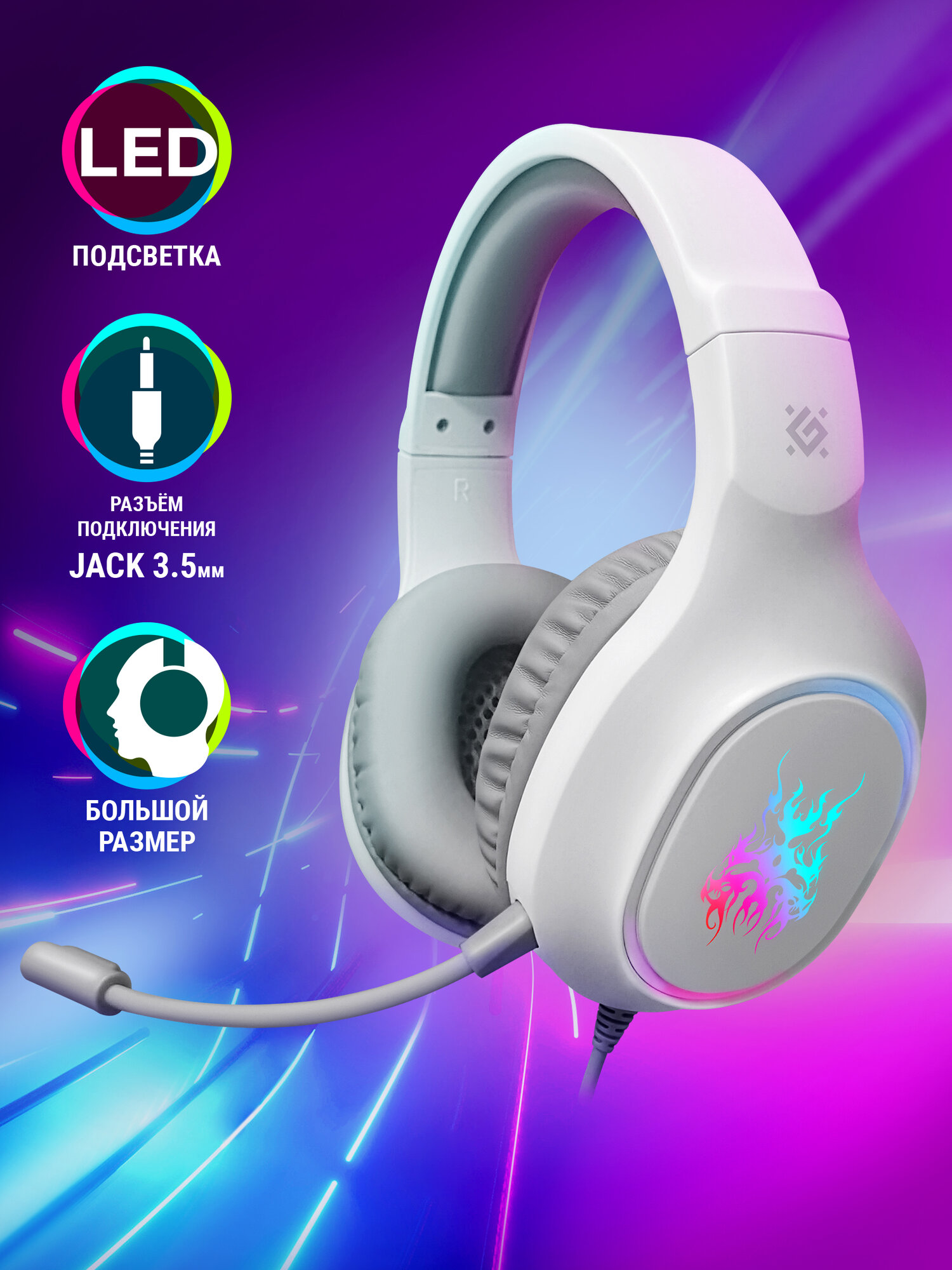 Наушники Проводные наушники Defender Fury, RGB подсветка, накладные, белые