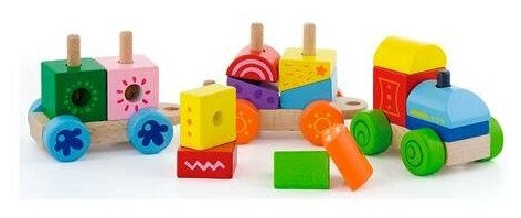 Развивающие игрушки из дерева Viga Конструктор деревянный Поезд с вагонами 50534
