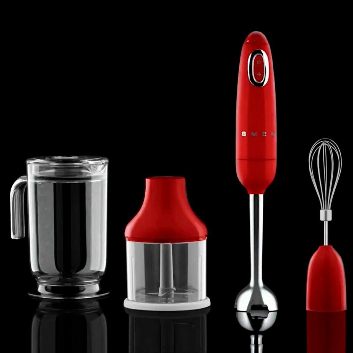 Миксеры и блендеры Погружной блендер SMEG красный, 700 Вт, с венчиком и мерным стаканом, HBF03RDEU