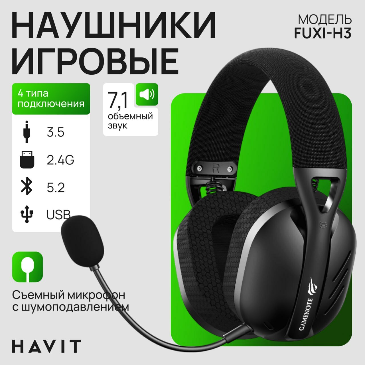 Наушники беспроводные игровые с микрофоном Havit Fuxi-H3 black 3 424 ₽ Подробнее
