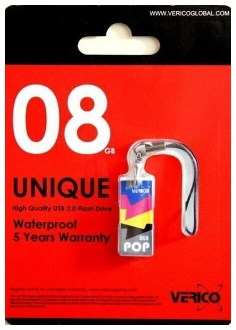 USB-флешки Флешка Verico "Unique", 8ГБ, USB 2.0, водонепрницаемый корпус