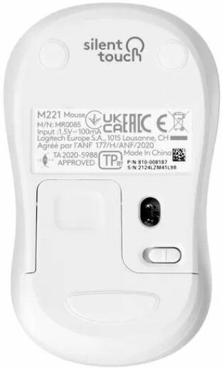 Мышь беспроводная Logitech M221 SILENT, 1000dpi, оптическая светодиодная, USB, белый (910-006090)
