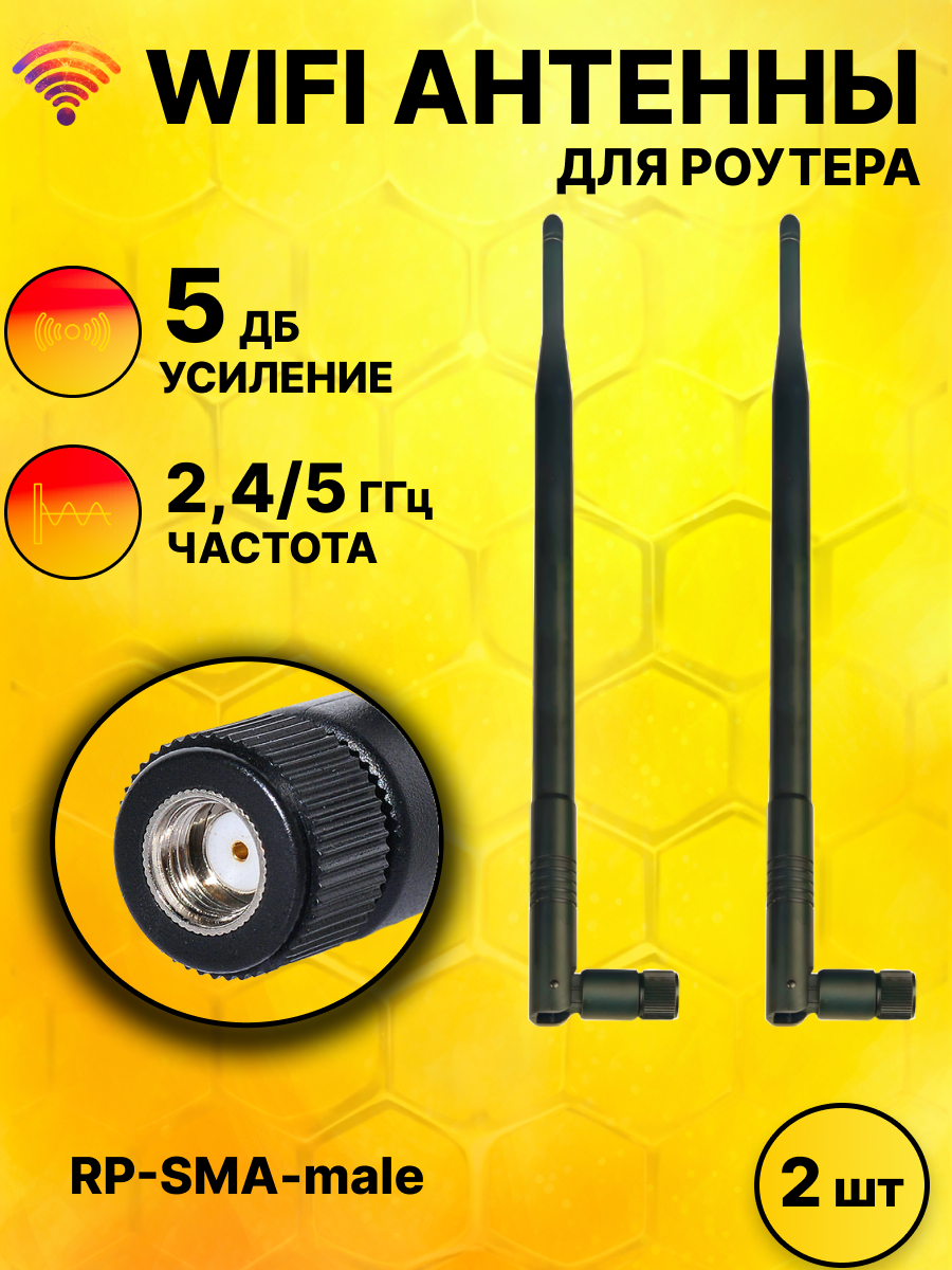 Антенна для роутера Антенна для WiFi роутера 2,4/5ГГц, 5 дБ, KROKS KC5-2400/5000 (SMA-RP) (2 шт)