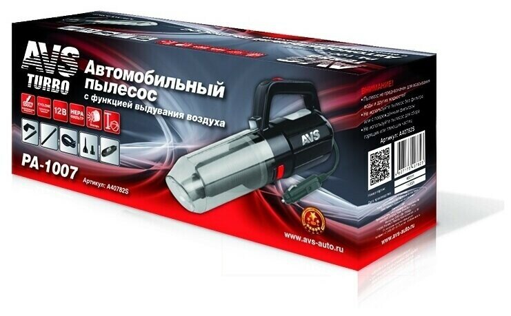 Пылесос автомобильный с функцией воздуходува AVS PA-1007 (6 насадок, фонарик)