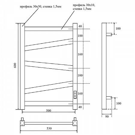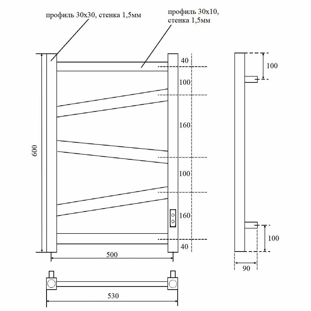 Полотенцесушитель электрический POINT П6 400x600 диммер справа, черный