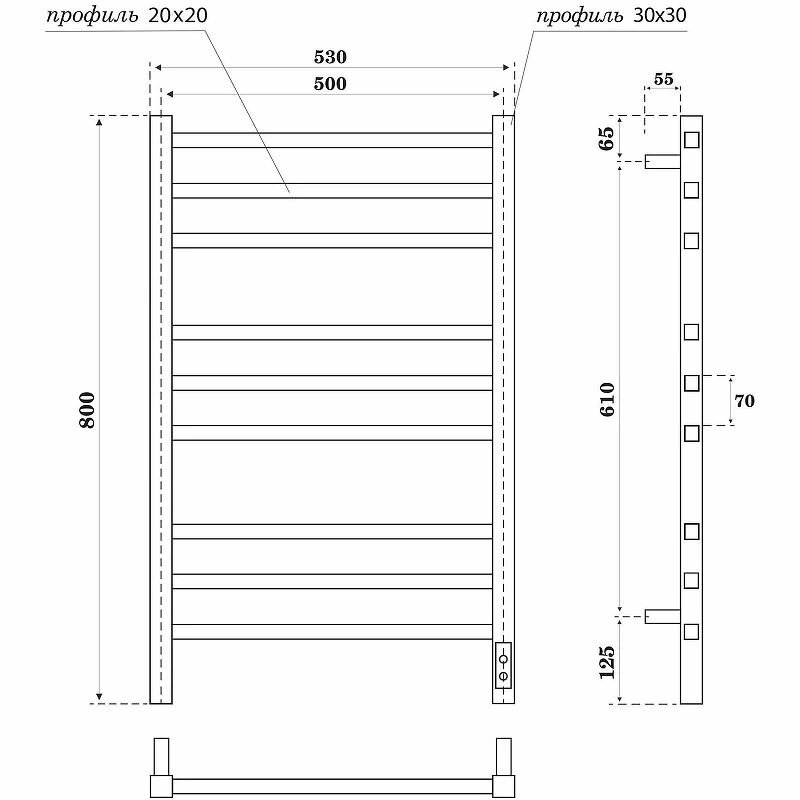 Полотенцесушитель электрический 500x800 POINT Вега (PN71858 П9) диммер справа