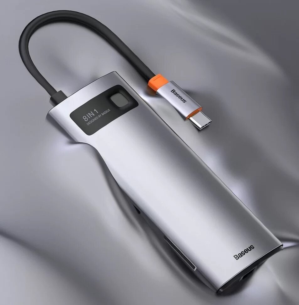 Хаб USB Baseus Cahub-cv0g Metal Gleam Series 8-in-1 Multifunctional Type-C HUB Docking Station Grey .