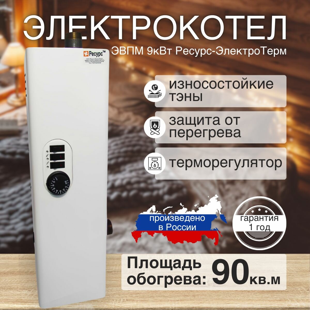 Отопительные котлы Электрический котел Ресурс ЭВПМ - 9кВт, 380В, подача вверх/обратка справа