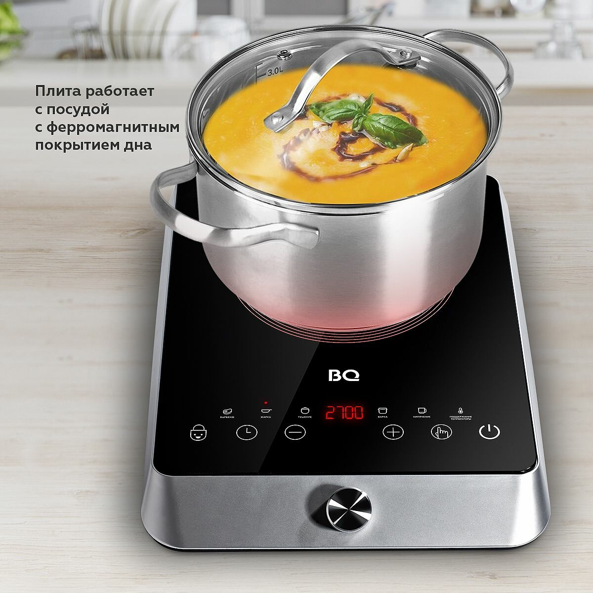 Плиты Индукционная настольная плита BQ HP124SS Silver, мощность 2700 Вт, 6 программ