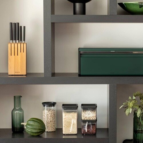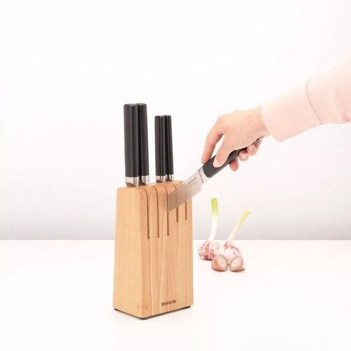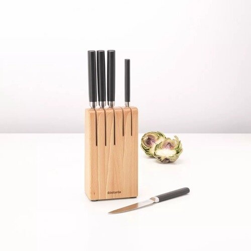 Набор ножей Набор из 5-ти ножей из высокоуглеродистой нержавеющей стали с деревянной подставкой Profile New, пластиковая рукоять, черный, серия Кухонные аксессуары и весы, Brabantia, 260483