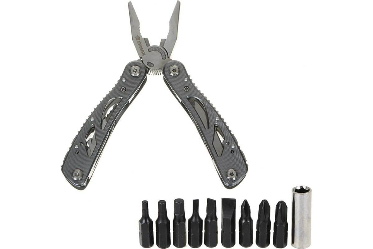 Многофункциональный инструмент ермак, 11 функций, нержавеющая сталь / Мультитул универсальный 118-169 / Нож складной, пассатижи, отвертка