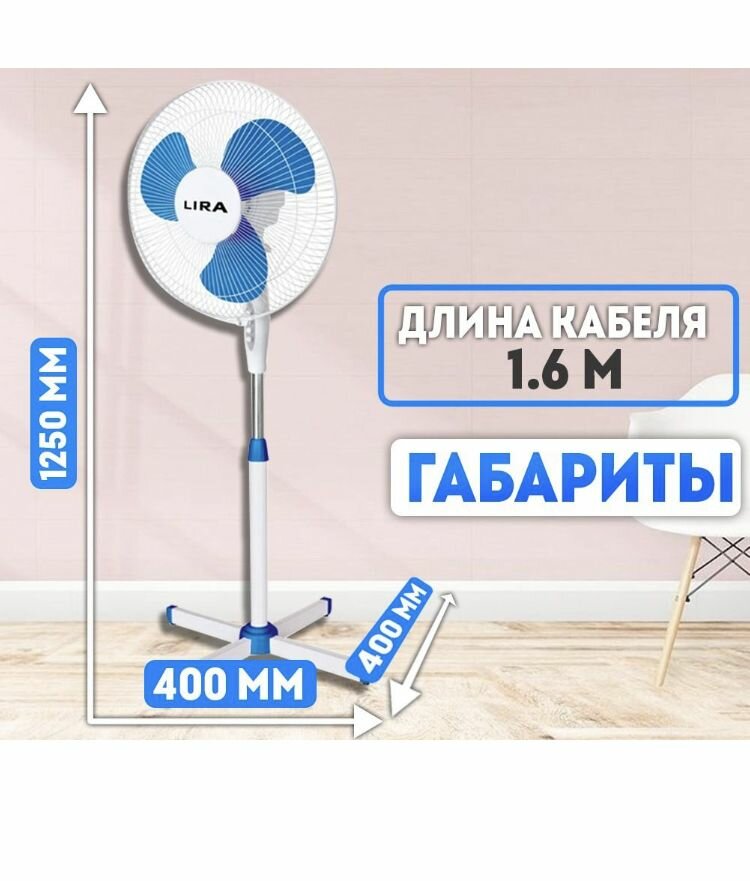 Вентилятор электрический напольный LIRA LR 1101 blue