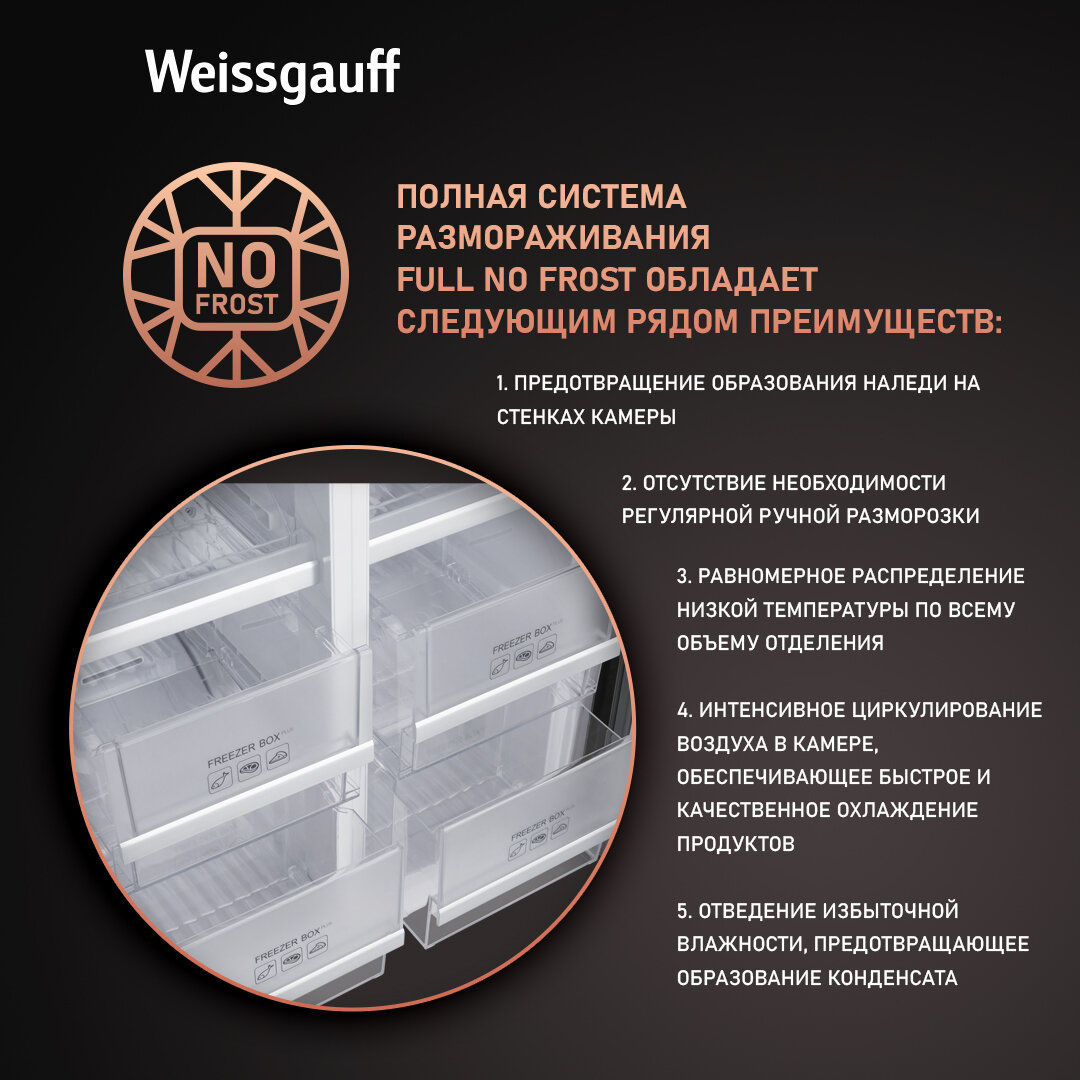Холодильник side by side Weissgauff WCD 450 XB NoFrost Inverter