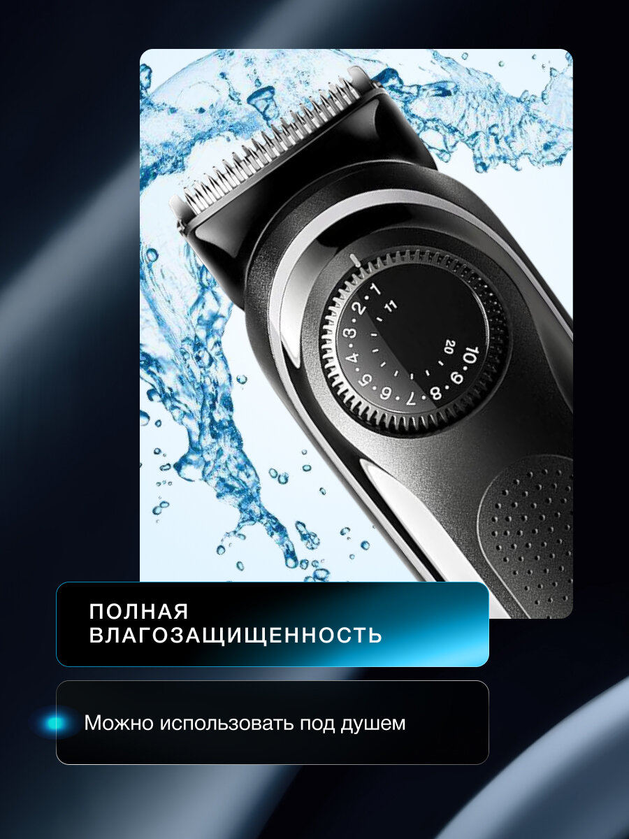 | Насадки | нож для стрижки / сеточная бритва / бритва для тела / универсальный гребень (2 шт) |
