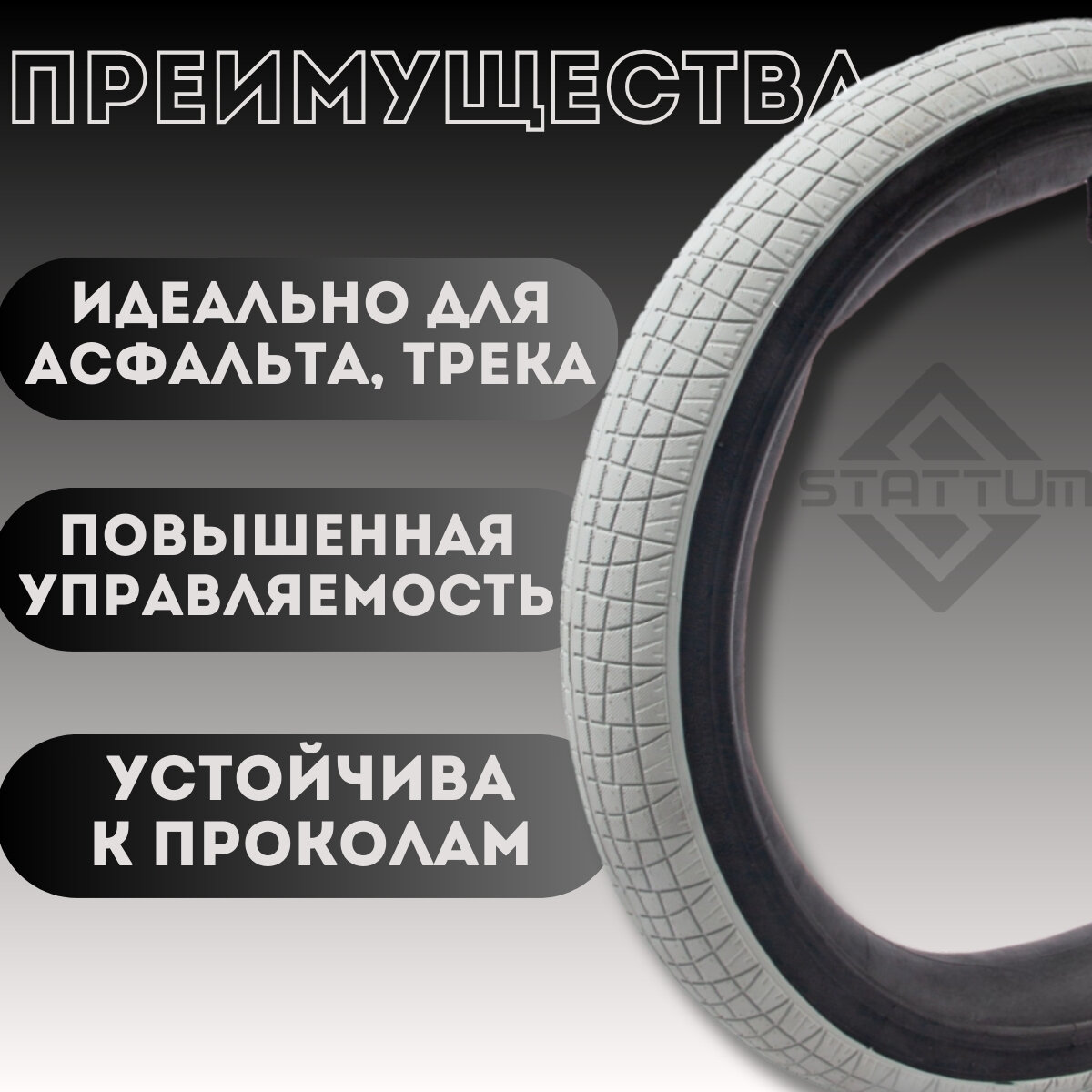 Велопокрышки Покрышка для велосипеда BMX, велошина, 20х2.3 дюймов, 60 psi, слик, серая, STATTUM