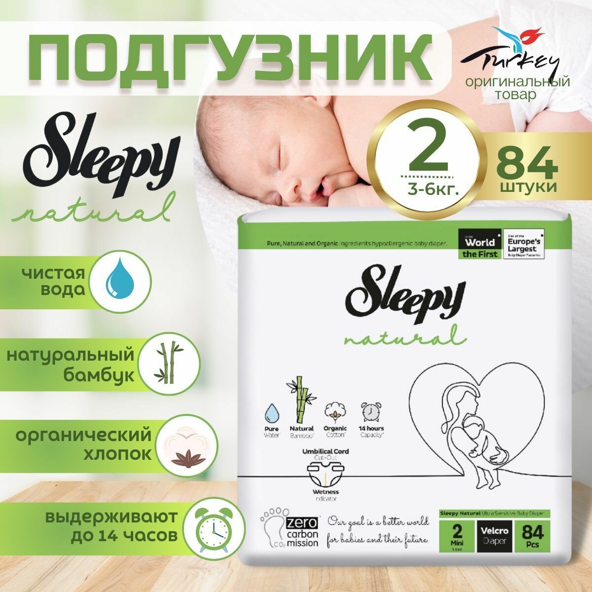Подгузники (памперсы) ЭКО Подгузники 2 размер (3-6 кг) натуральное волокно, Sleepy Natural, 84 шт