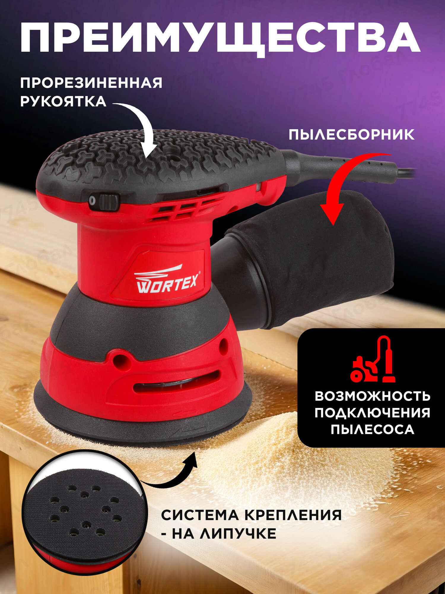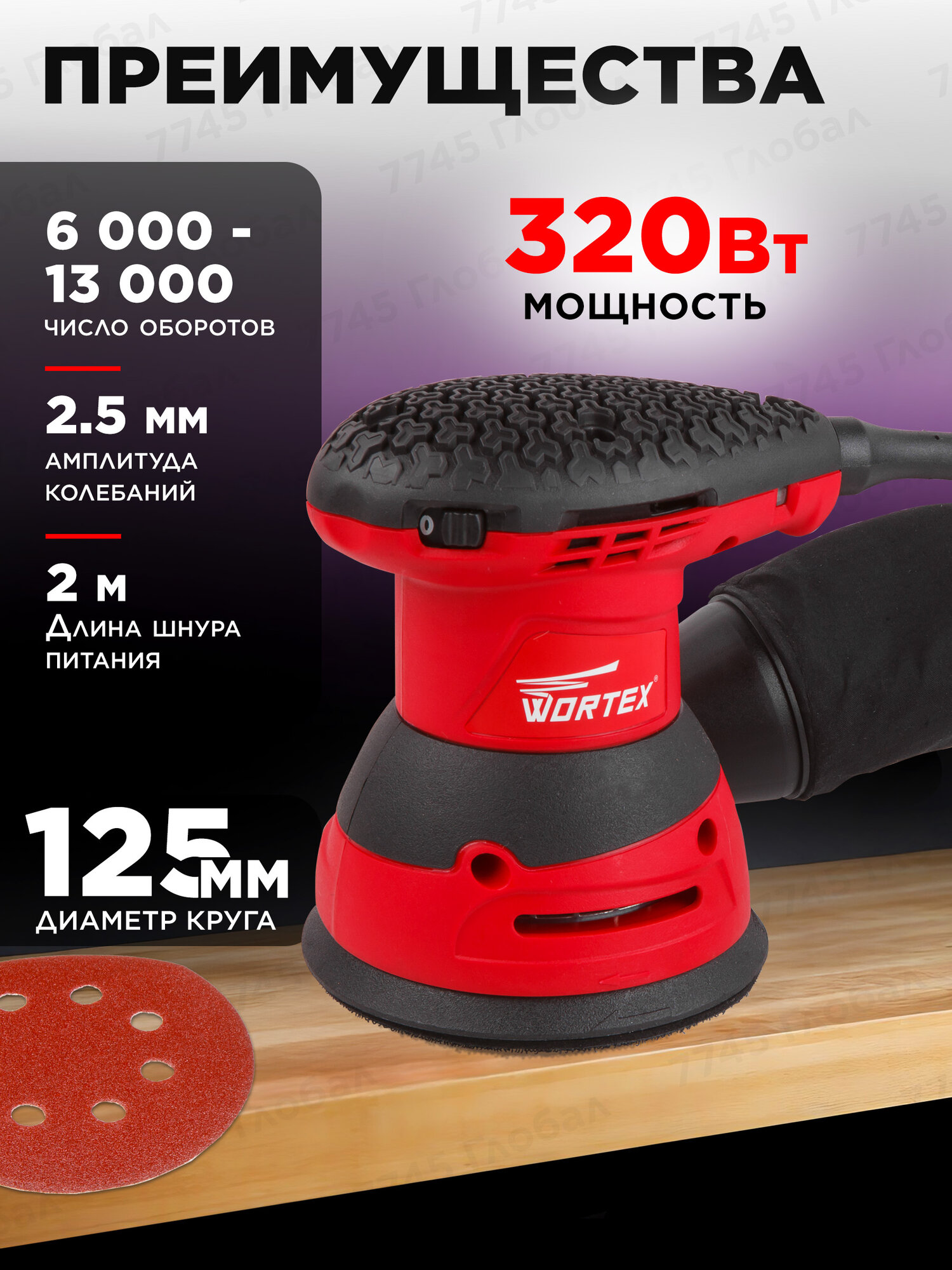 Эксцентриковая шлифмашина Wortex RS 1235 E, 320 Вт