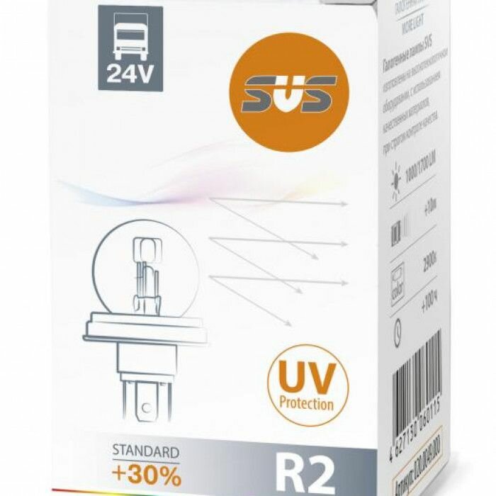 Автолампы Лампа галогеновая головного света SVS Standard +30%, R2, P45t, 3200K, 12V, 45/40W (1 шт.)