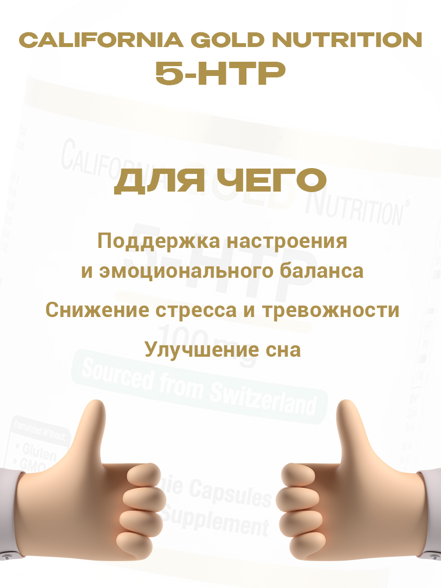 5 HTP (5 гидрокситриптофан) 100мг California Gold Nutrition, 90 капсул / Для похудения, настроения, сна