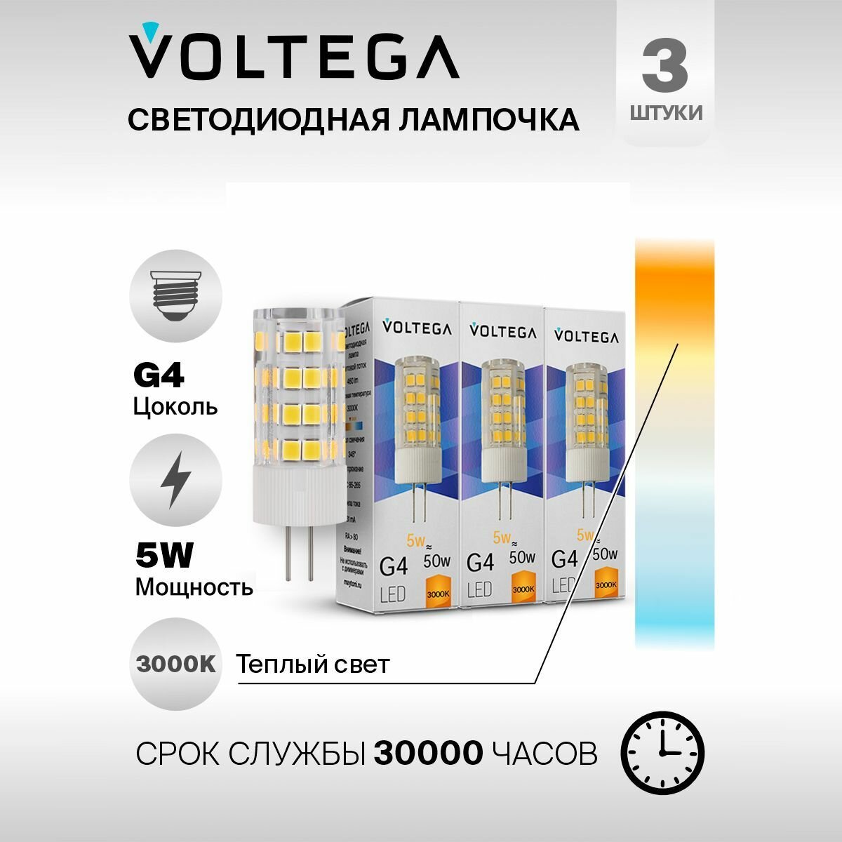 Лампочки Лампочка светодиодная форма капсулы 5W теплый свет Voltega Simple Capsule 3000K упаковка 3 штуки