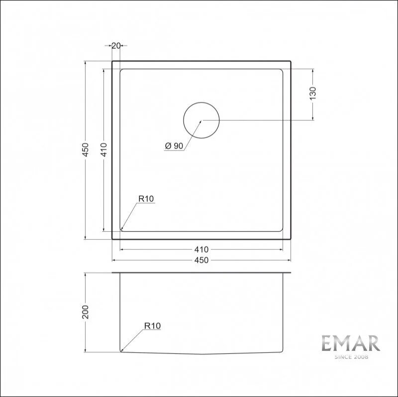 Мойка для кухни из нержавеющей стали Emar / Емар EMB-112 Nano Satine квадратная PVD покрытие сатин 45x45см глубина чаши 20см
