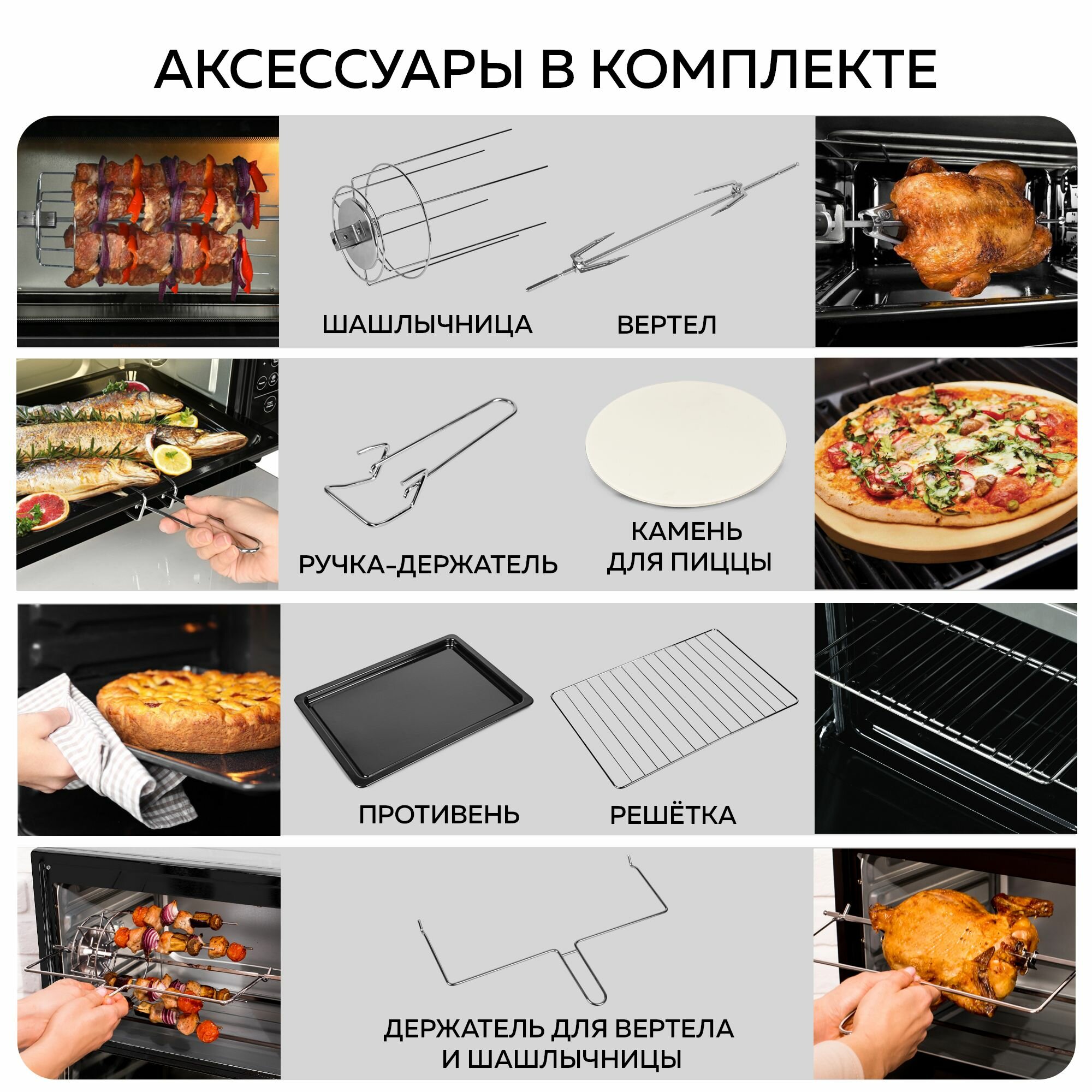 | Функции и возможности | гриль / конвекция / вертел / таймер / автоматическое отключение |