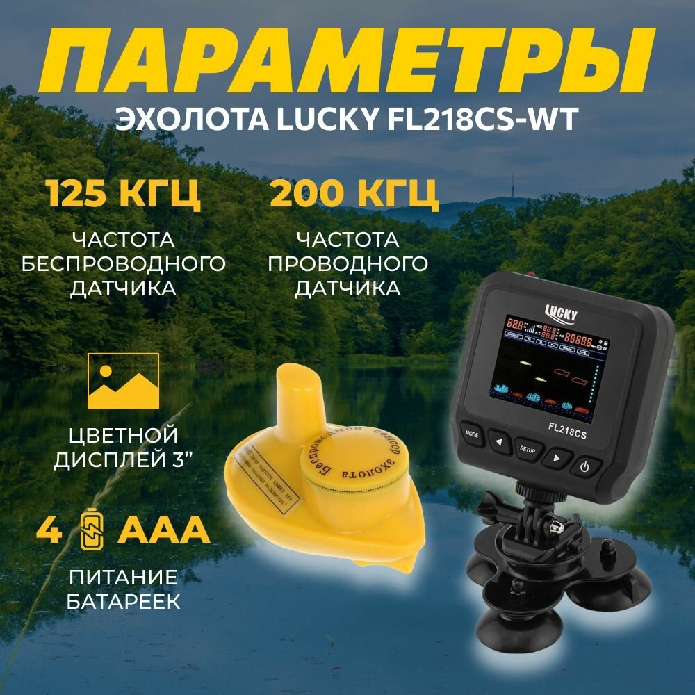 Эхолоты и картплоттеры Эхолот для рыбалки найдет за 3 секунды где ловить рыбу Lucky FL218CS-WT с двумя датчиками проводного и беспроводного типа действия, подойдет для зимней и летней рыбной ловли с лодки и в лунке