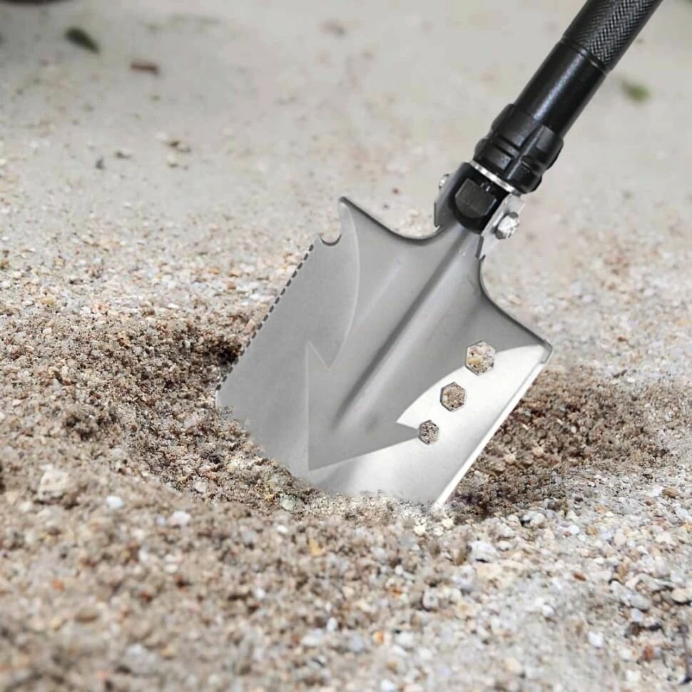 Лопаты Лопата туристическая Adimanti HK001 17 в 1, многофункциональная, чехол на пояс в комплекте, черный/хром