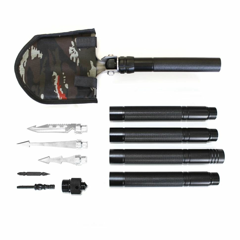 | Дополнительные функции | пила / зубчатая насечка / мотыга (сапка) / нож / ледоруб / стропорез / стеклобой / отвертка / открывалка для бутылок / компас / острога для рыбы |