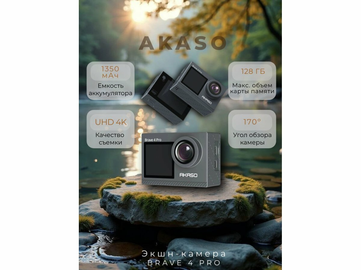 Экшн-камера AKASO BRAVE 4 PRO. Цвет: серый.