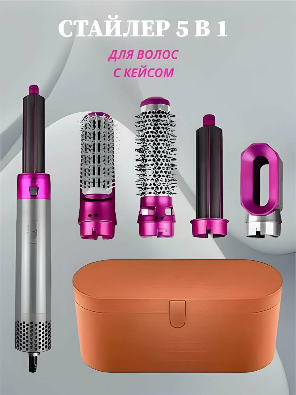 Фены и приборы для укладки Стайлер 5-в-1 с кейсом, плойкой, феном и насадками для объема и укладки волос