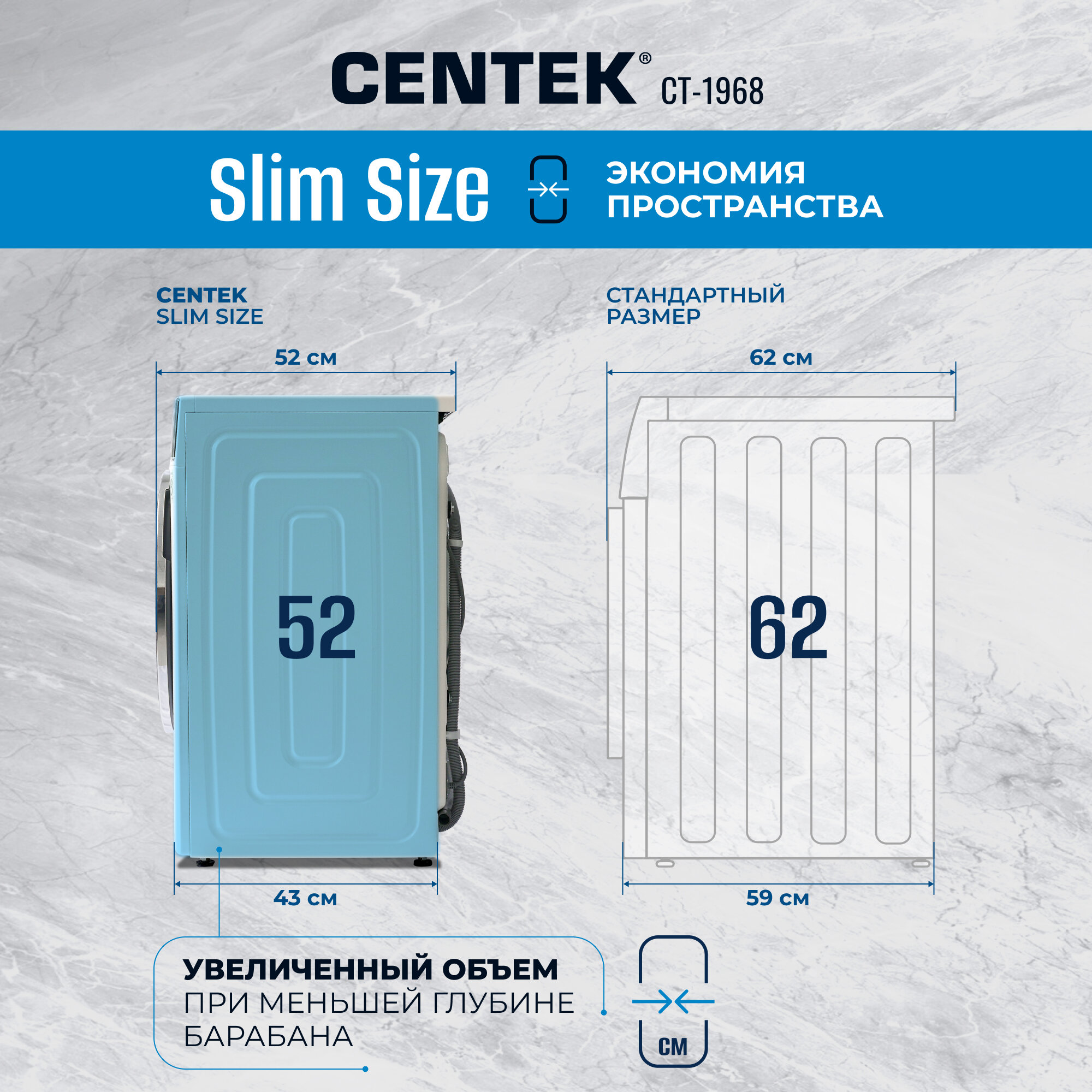 Стиральная машина Centek Ct-1951, класс A+++, 1400 об/мин, 8 кг, сушка 5 кг, Inverter, белая Centek .