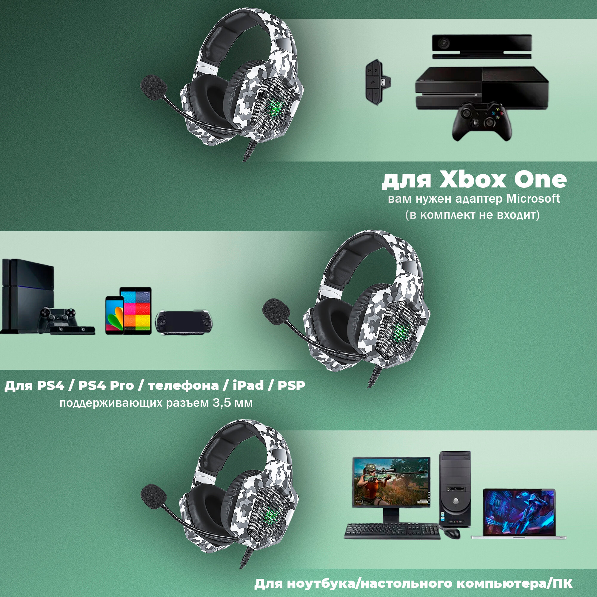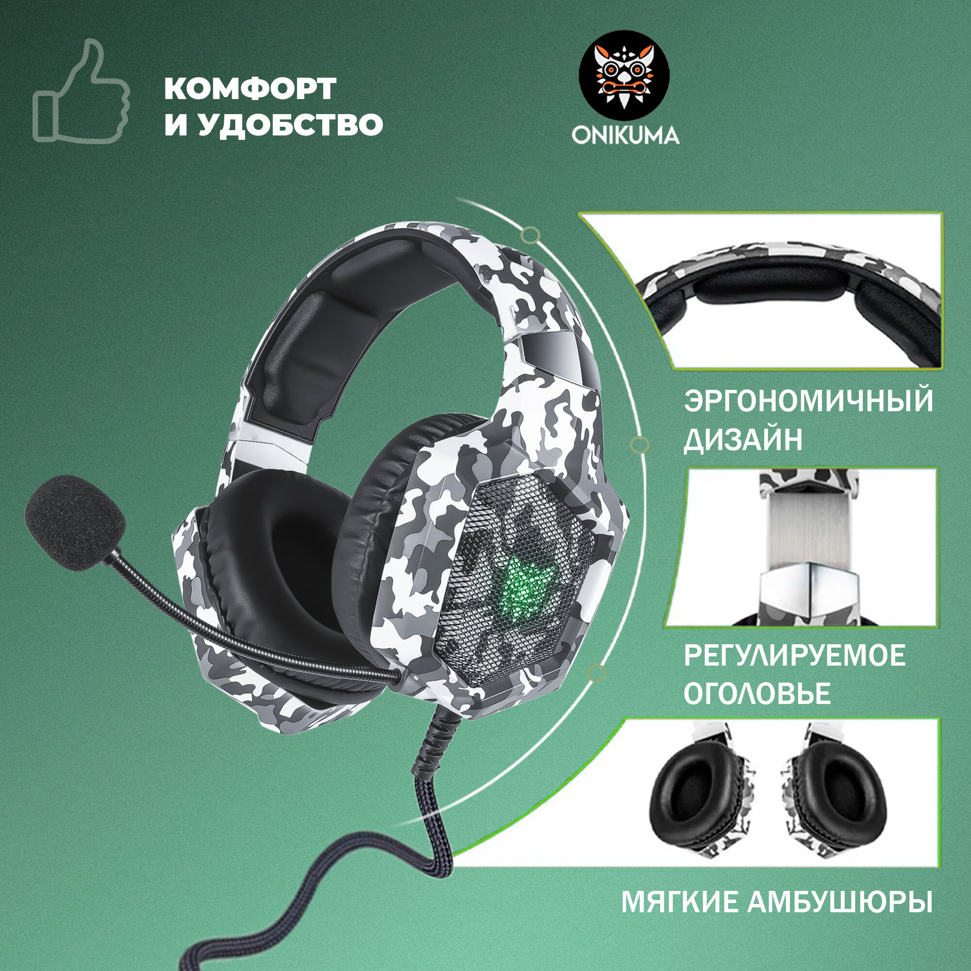 Наушники Наушники игровые Onikuma K8, RGB, 3.5 mini jack, белый камуфляж хаки