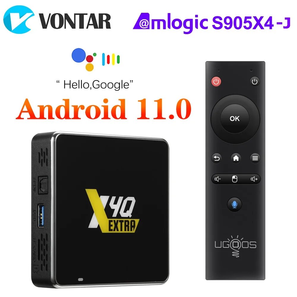 UGOOS X4Q PLUS 4Гб 64Гб ТВ приставка пульт с голосовым поиском и аэромышь Amlogic S905X4 14 149 ₽ Подробнее