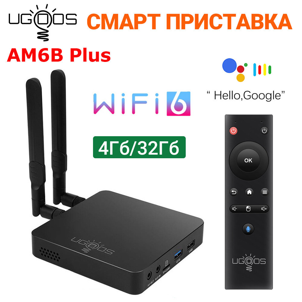 Медиаплееры и ТВ-тюнеры Смарт ТВ приставка Ugoos AM6B Plus Amlogic S922X-J 4K ТВ Бокс Андроид 9.0 4Гб/32Гб WiFi-6 c Bluetooth пультом