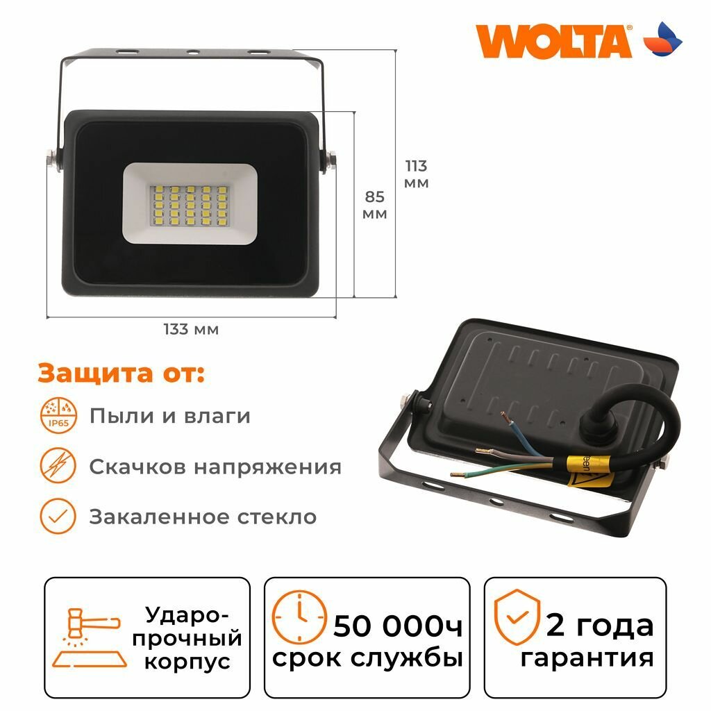 WOLTA Прожектор 10Вт WFL-10W/07 уличный 6500К IP65 900лм серый 652 ₽ Подробнее