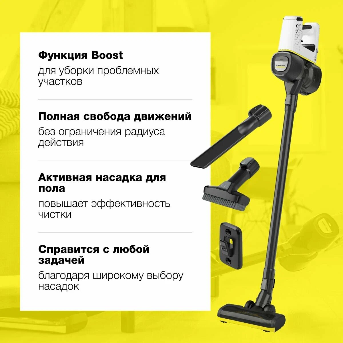 Пылесос вертикальный Karcher VC 4 Cordless myHome *EU 1.198-630.0, режим Boost, безмешковая система фильтрации, время автономной работы до 30 мин, белый 22 390 ₽ Подробнее