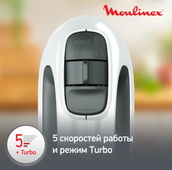 Миксеры и блендеры Миксер ручной Moulinex HM462110 белый/черный, 500 Вт, 5 скоростей, турбо режим,