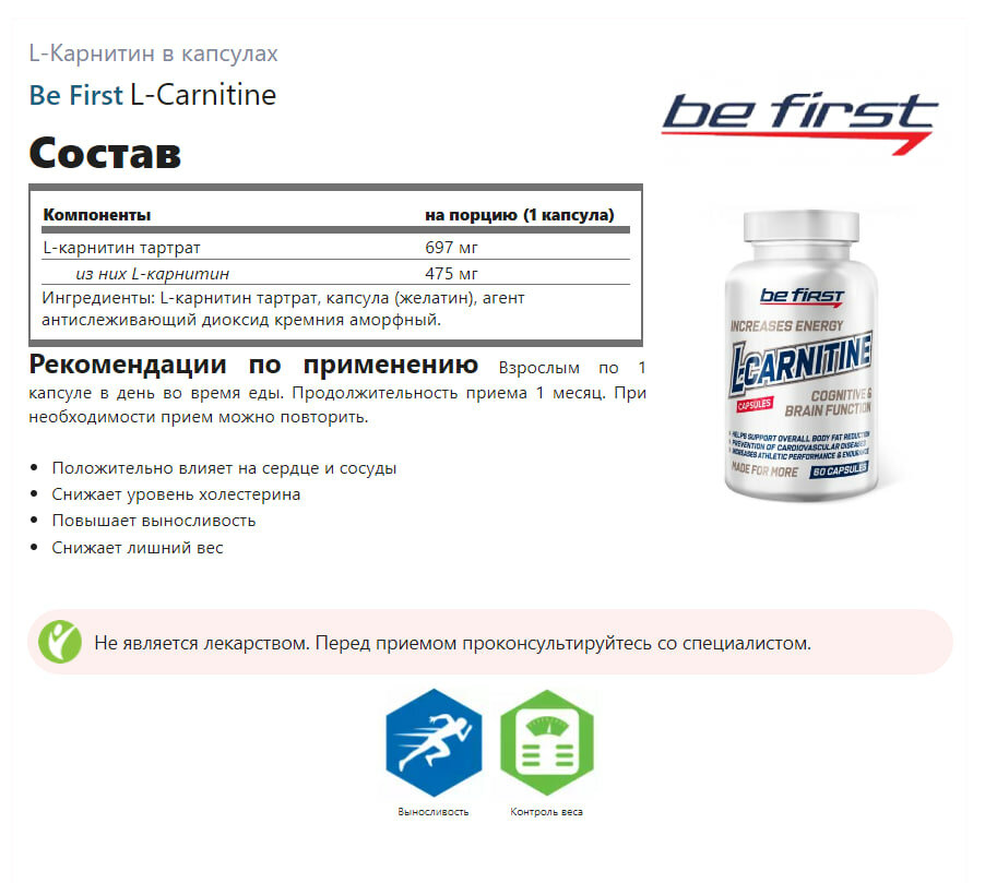 Be First L-carnitine capsules (120капс)