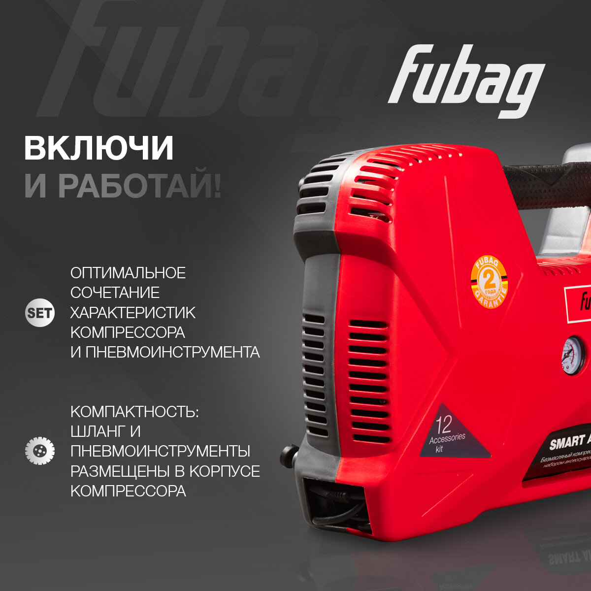 Компрессоры Компрессор воздушный безмасляный FUBAG Smart Air + 6 предметов, 180 л/мин, ресивер 2 л, 8 бар, 220 В