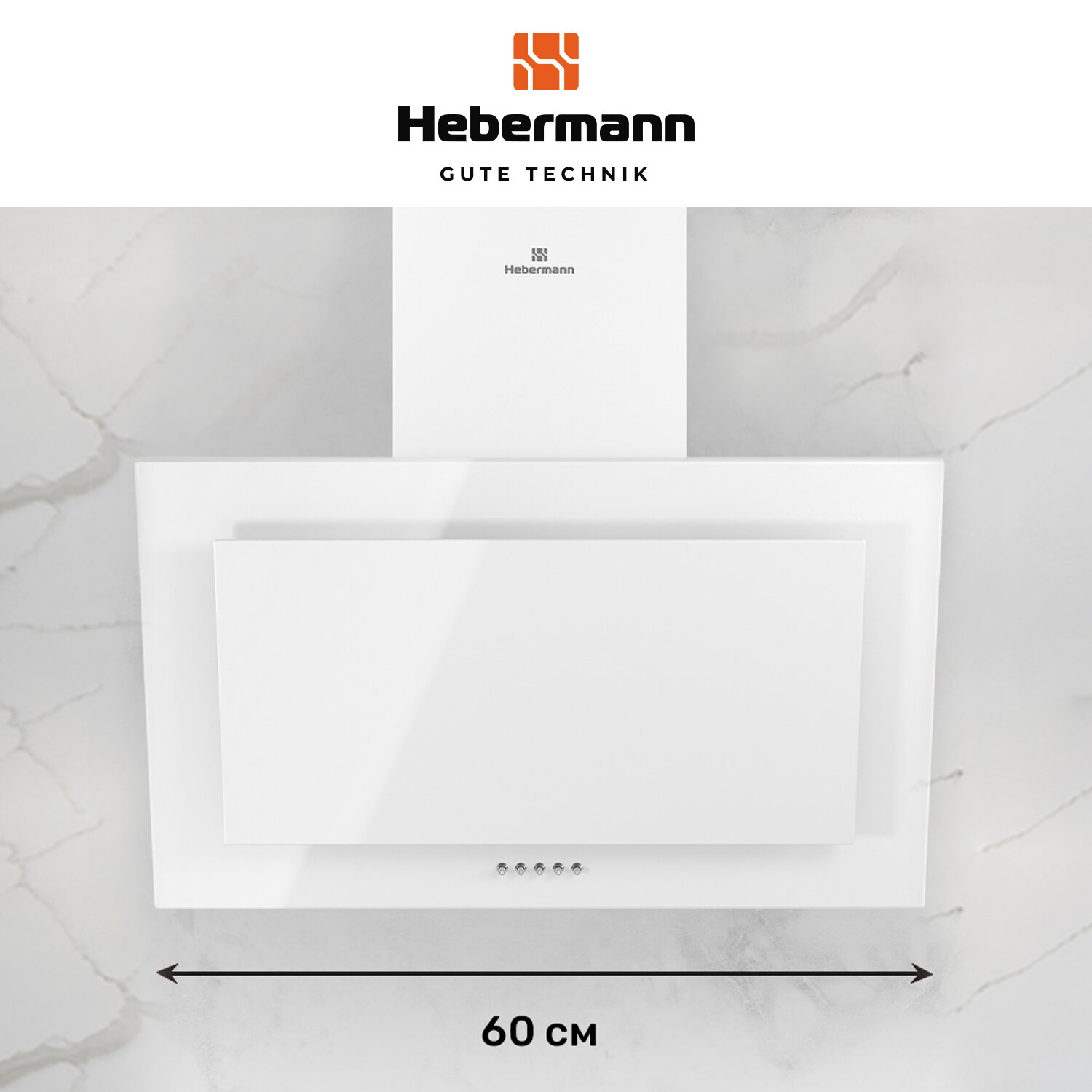 Вытяжки Наклонная кухонная вытяжка Hebermann HBKH 60.5 W, 60 см, белая, кнопочное управление, LED лампы, отделка- окрашенная сталь, стекло, производительность 700 м³/ч