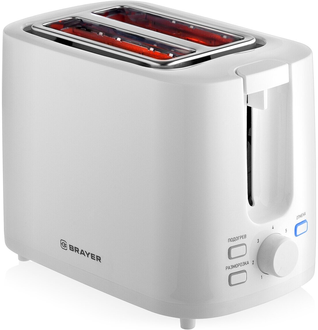 Тостер BRAYER 2113BR 930 Вт, 7 режимов, подогрев, разморозка, отмена, автоотключение, 2 тоста, съемный поддон BR2113