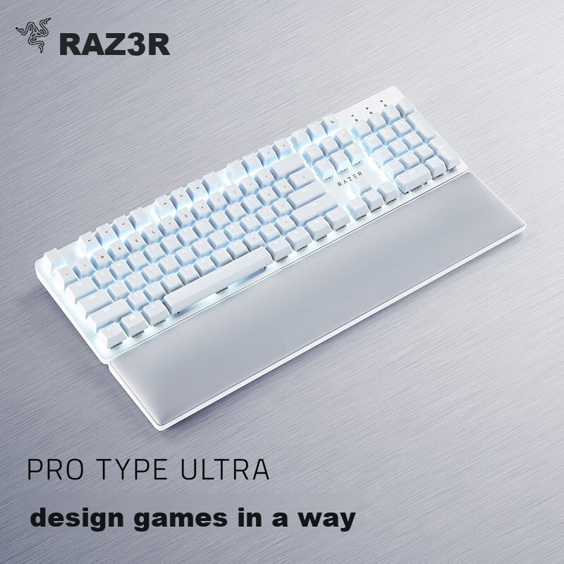 Клавиатуры Беспроводная механическая клавиатура Razer Pro Type Ultra, белая, Bluetooth, Quiet Yellow Switches, подставка
