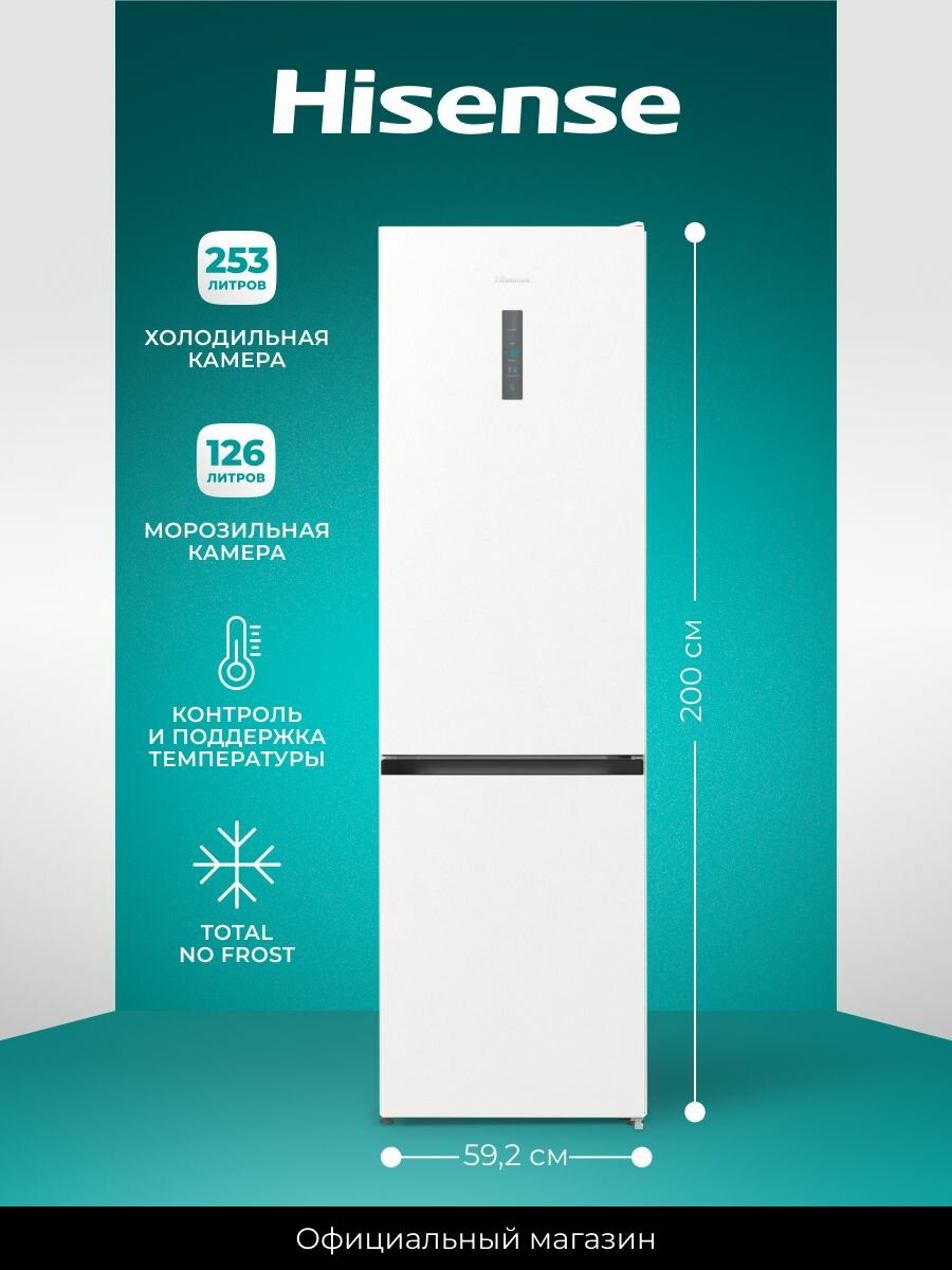 Холодильники Холодильник двухкамерный Hisense RB434N4BW2, класс энергоэффективности A++, 331 л, Total No Frost, технология Multi-Air Flow, ящик Convert Fresh Zone, быстрое замораживание, белый