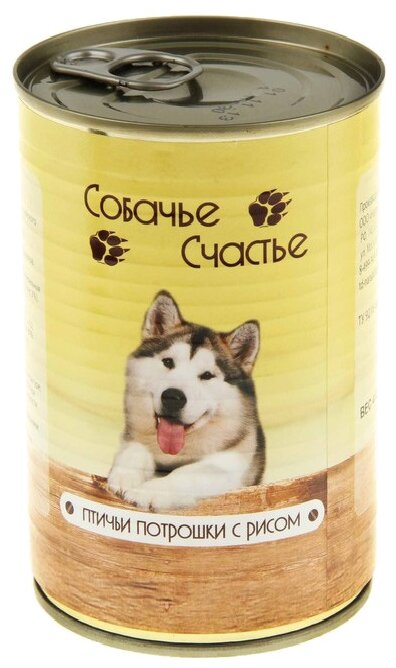 Собачье счастье консервы для собак Птичьи потрошки с рисом 750г 319 ₽ Подробнее